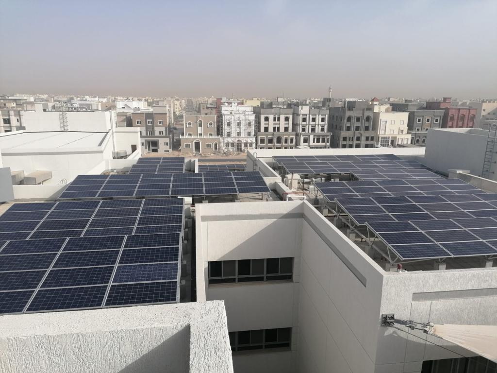 AEPCo. has been contracted to design, supply, install, test, and commission a 1.67 MWp rooftop PV system across several different roof spaces (mosques, schools, clinics, supermarkets, etc) in blocks 2, 3 and 4. The aim of this system is to provide up to 20% of the annual electricity consumption for these three blocks from solar energy to reduce the overall demand on the National Grid stemming from these new areas. The system will be grid-connected and consists of 330 Wp, Suntech PV modules and KACO Blueplanet inverters covering the roof area of the car park. Installation of this system across the various locations commenced in June 2020.